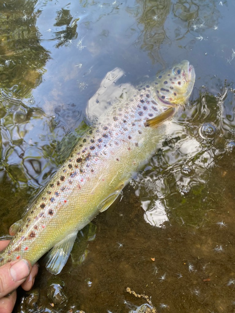 As the last stunning trout slips through my fingers and back into the safety of the river, I take stock of the evenings efforts and take a moment to appreciate how fortunate I am. Not only because I have finally caught the fish I’ve been yearning for but also because in an ever changing and chaotic world I am lucky to be able to escape for these brief moments and surround myself in the comfort and beauty of nature that, to me, is so nourishing and cathartic. I use the rest of my time on the peaceful banks to sit and watch fish rise untroubled as the dappled light, filtering down through the leafy branches, moves across the water. Evenings such as this are hard to beat and this one has certainly been worth the wait after my first unsuccessful outing.
