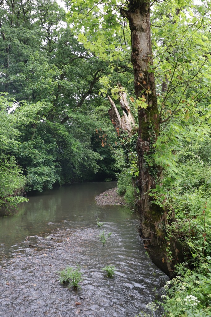 I parked the car in a muddy lay-by and wasted no time with my final preparations. Throwing my waders on before my clothes beneath could get too damp and piecing my rod together I set off down an overgrown footpath. Sodden foliage hung heavily over, crowding the slippery track and quickly soaking my waders. Cows sheltered in vain in the lee of a hedge, chewing their cud and looking thoroughly fed up while swallows whirled low over the field struggling to maintain stability. Keeping the pace while being buffeted by strong gusts, I was soon at the head of the beat and after scanning the QR code tucked away at the base of an ash tree, I was ready to fish.